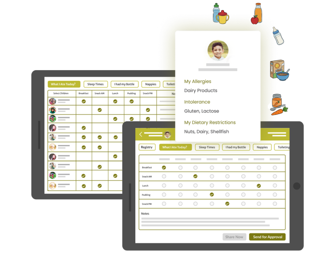 - Instant access to vital information: Instantly access vital information like child routines, dietary allergies, Special Educational Needs and Disabilities (SEND) requirements, and parent/carer records right from the room screen, enabling more informed and personalised care and support.